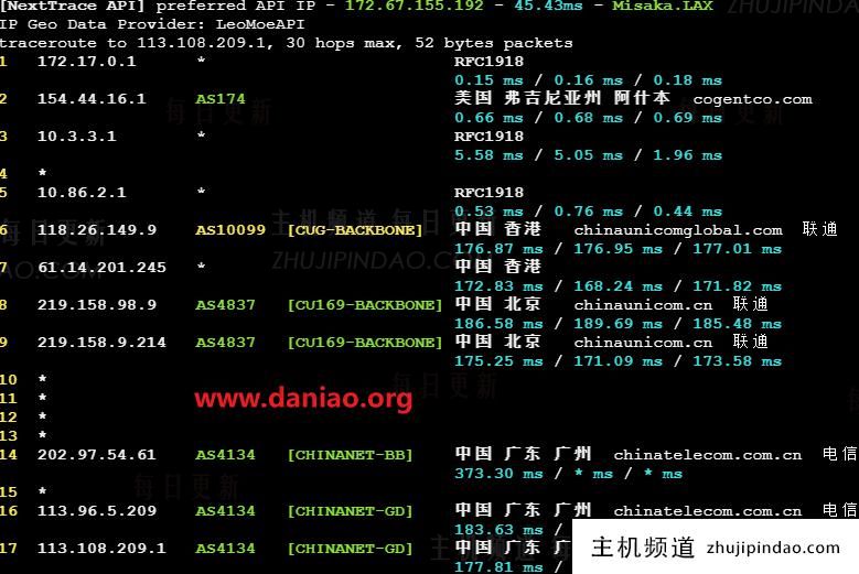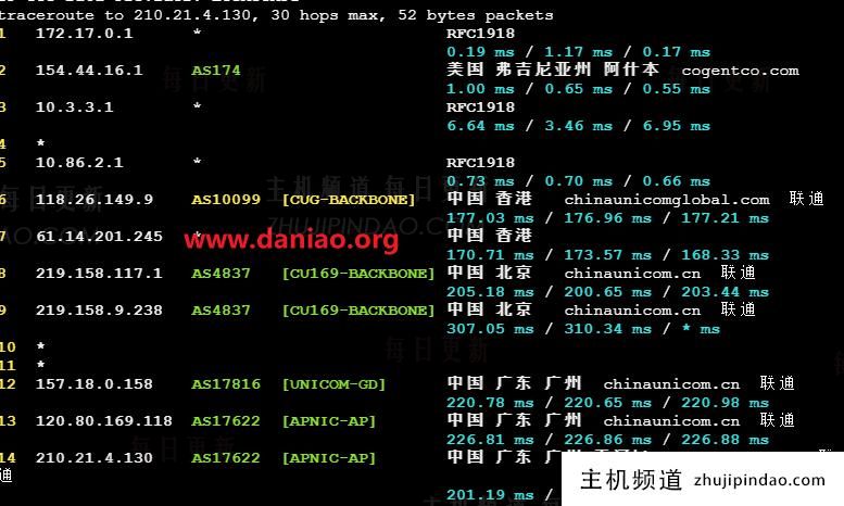 联通回程:联通就更直接了,走自家AS10099+AS4837回来,亲儿子待遇,速度自然有保障。