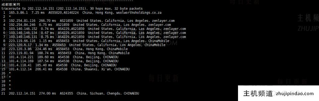 教育网也照顾到了,路由路径清晰。