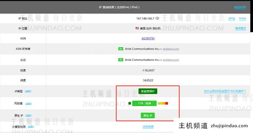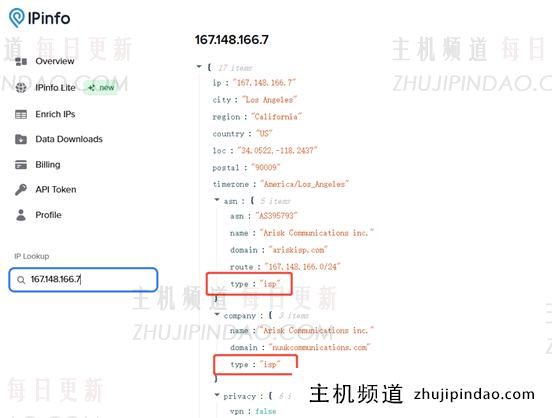 再用IPinfo这个工具交叉验证一下,输入167.148.166.7,能直接看到详细的双ISP信息。这点确实没吹牛,IP的身份是实打实的。
