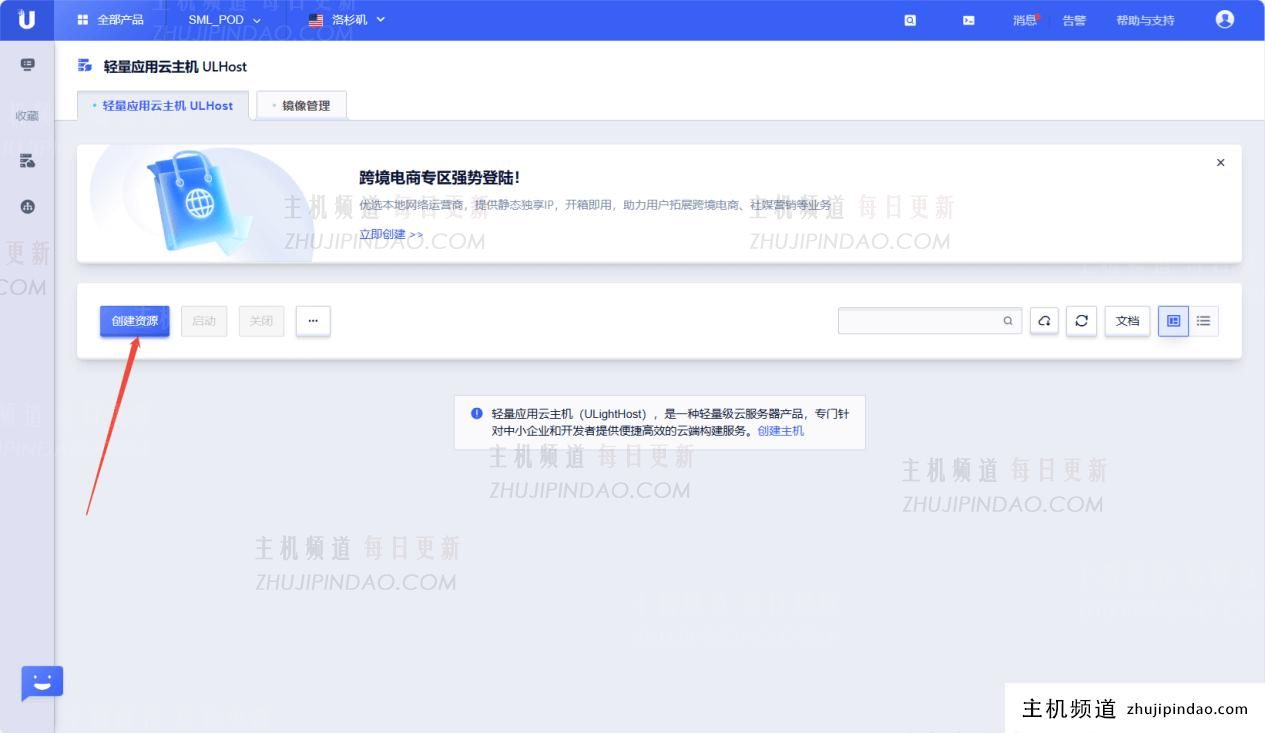 - 登录UCloud轻量云主机的控制台(https://console.ucloud.cn/light-server/create?scene=cross-border)