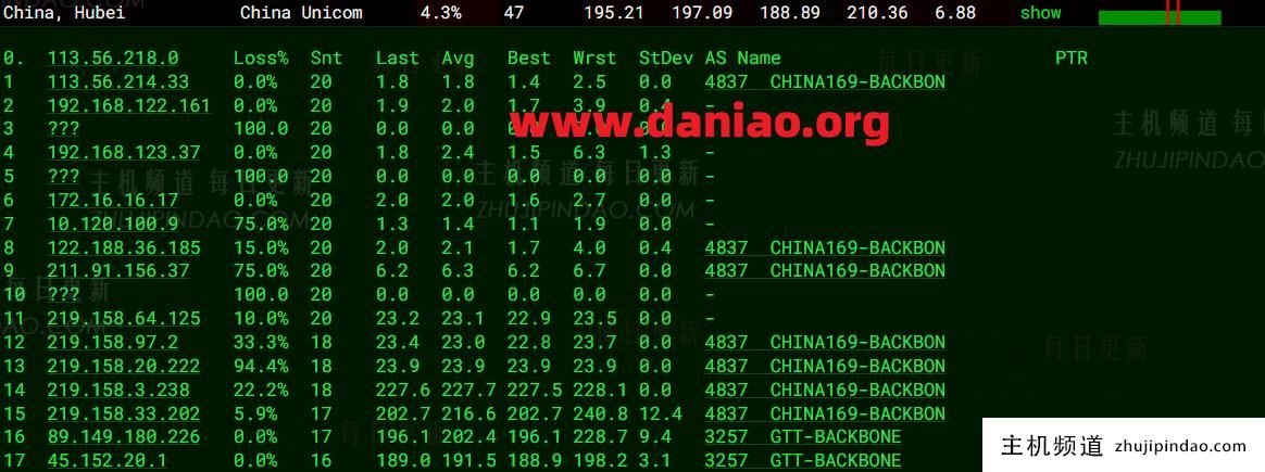 北京联通 NextTrace v1.4.0 2025-04-16T01:10:07Z dccc41b [NextTrace API] preferred API IP - 45.137.198.56 - 69.65ms - 🐠 (Relay) → Misaka.BER IP Geo Data Provider: LeoMoeAPI traceroute to 202.106.50.1, 30 hops max, 52 bytes payload, ICMP mode 1 45.152.20.1 AS3257 德国 黑森州 美因河畔法兰克福 gtt.net 1.37 ms / 1.26 ms / 1.26 ms 2 * 3 89.149.137.14 AS3257 [GTT-BACKBONE] 德国 黑森 美因河畔法兰克福 gtt.net 1.58 ms / 1.33 ms / 11.34 ms 4 * 5 219.158.6.37 AS4837 [CU169-BACKBONE] 美国 加利福尼亚 洛杉矶 chinaunicom.cn 230.42 ms / 230.39 ms / 230.46 ms 6 * 7 * 8 * 9 202.106.50.1 AS4808 [UNICOM-BJ] 中国 北京 丰台区 中国联通 联通 223.93 ms / 223.94 ms / 223.97 ms ---------------------------------------------------------------------- 上海联通 NextTrace v1.4.0 2025-04-16T01:10:07Z dccc41b [NextTrace API] preferred API IP - 45.137.198.56 - 69.46ms - 🐠 (Relay) → Misaka.BER IP Geo Data Provider: LeoMoeAPI traceroute to 210.22.97.1, 30 hops max, 52 bytes payload, ICMP mode 1 45.152.20.1 AS3257 德国 黑森州 美因河畔法兰克福 gtt.net 1.38 ms / 1.33 ms / 1.29 ms 2 * 3 89.149.137.14 AS3257 [GTT-BACKBONE] 德国 黑森 美因河畔法兰克福 gtt.net ae1.cr7-fra2.ip4.gtt.net 1.54 ms / 2.03 ms / 21.72 ms 4 * 5 219.158.11.149 AS4837 [CU169-BACKBONE] 中国 北京 chinaunicom.cn 联通 160.99 ms / 161.41 ms / 160.47 ms 6 219.158.3.137 AS4837 [CU169-BACKBONE] 中国 北京 chinaunicom.cn 联通 270.91 ms / * ms / * ms 7 219.158.4.173 AS4837 [CU169-BACKBONE] 中国 北京 chinaunicom.cn 联通 298.33 ms / * ms / * ms 8 219.158.7.230 AS4837 [CU169-BACKBONE] 中国 上海 chinaunicom.cn 联通 228.37 ms / 227.84 ms / * ms 9 * 10 112.64.250.202 AS17621 [APNIC-AP] 中国 上海 chinaunicom.cn 联通 182.94 ms / 186.44 ms / 187.64 ms 11 210.22.97.1 AS17621 [CNCNET-SH] 中国 上海 闵行区 chinaunicom.cn 联通 200.95 ms / 201.72 ms / 203.11 ms ---------------------------------------------------------------------- 深圳联通 NextTrace v1.4.0 2025-04-16T01:10:07Z dccc41b [NextTrace API] preferred API IP - 45.137.198.56 - 72.82ms - 🐠 (Relay) → Misaka.BER IP Geo Data Provider: LeoMoeAPI traceroute to 210.21.196.6, 30 hops max, 52 bytes payload, ICMP mode 1 45.152.20.1 AS3257 德国 黑森州 美因河畔法兰克福 gtt.net 1.28 ms / 1.27 ms / 1.24 ms 2 213.39.48.117 AS3257 德国 黑森 美因河畔法兰克福 gtt.net et-0-0-26-0.cr11-fra2.ip4.gtt.net 121.89 ms / * ms / * ms 3 89.149.137.6 AS3257 [GTT-BACKBONE] 德国 黑森 美因河畔法兰克福 gtt.net ae0.cr7-fra2.ip4.gtt.net 1.34 ms / 1.46 ms / 7.12 ms 4 219.158.36.161 AS4837 [CU169-BACKBONE] 中国 北京市 chinaunicom.cn 2.07 ms / * ms / * ms 5 219.158.4.89 AS4837 [CU169-BACKBONE] 中国 北京 北京 chinaunicom.cn 231.33 ms / 231.38 ms / 231.88 ms 6 219.158.16.81 AS4837 [CU169-BACKBONE] 中国 北京 chinaunicom.cn 联通 210.85 ms / * ms / * ms 7 219.158.5.145 AS4837 [CU169-BACKBONE] 中国 北京 chinaunicom.cn 联通 237.13 ms / 237.79 ms / 237.88 ms 8 219.158.19.226 AS4837 [CU169-BACKBONE] 中国 广东 广州 chinaunicom.cn 联通 * ms / * ms / 320.03 ms 9 112.92.0.82 AS17816 [APNIC-AP] 中国 广东 茂名市 chinaunicom.cn 联通 206.63 ms / 206.17 ms / 206.13 ms 10 120.80.144.34 AS17623 [APNIC-AP] 中国 广东 深圳 chinaunicom.cn 联通 241.22 ms / 246.63 ms / 241.14 ms 11 210.21.196.6 AS17623 中国 广东 深圳 宝安区 chinaunicom.cn 联通 234.89 ms / 236.21 ms / 236.54 ms