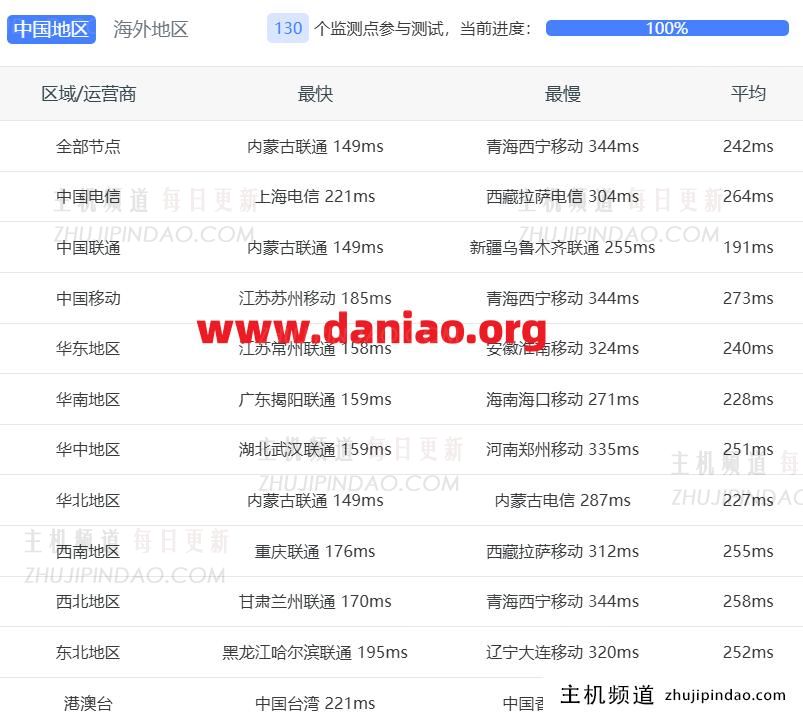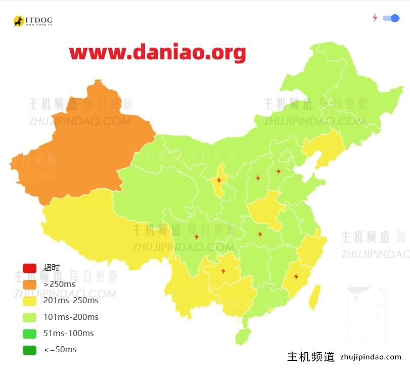 Ping值图也印证了这一点,全国一片红,平均延迟都在200ms以上。所以,指望它来建站给国内用户提供低延迟访问,那是不现实的。