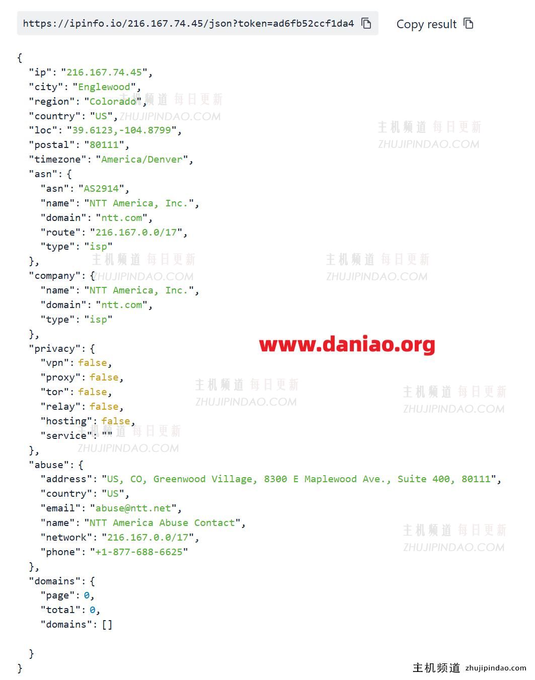 ipinfo的查询结果也证实了官方的说法,确实是双ISP属性,上游是NTT,完美。