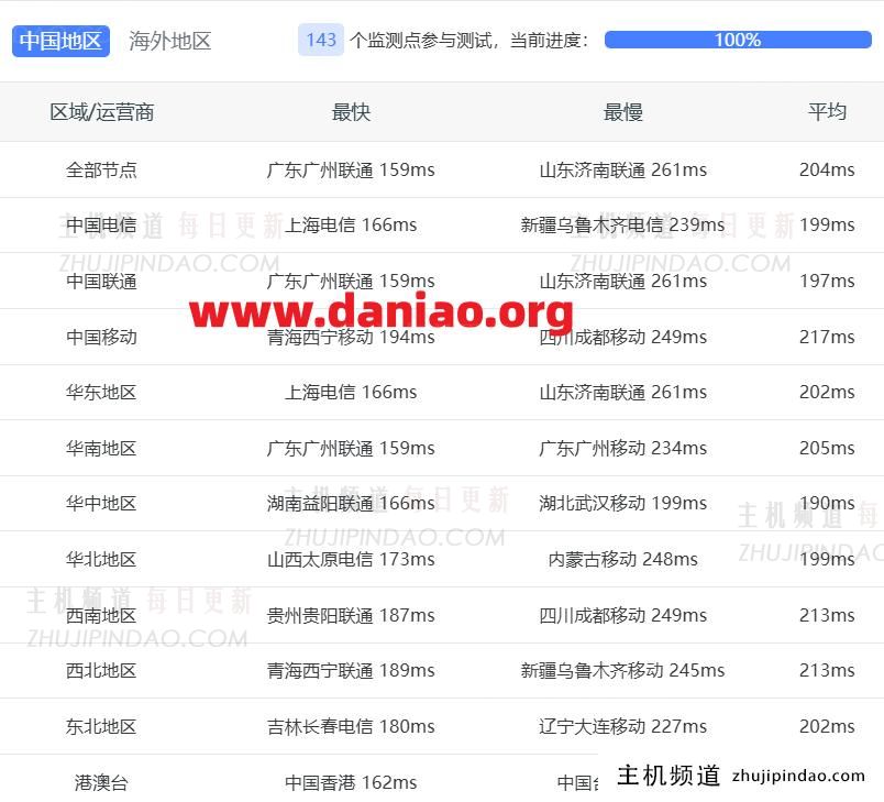 国内三网的ping值如下,大家可以根据自己所在地参考一下,整体看延迟不算低,毕竟是普通线路,不是CN2 GIA那种优化线路,这也是预料之中的。