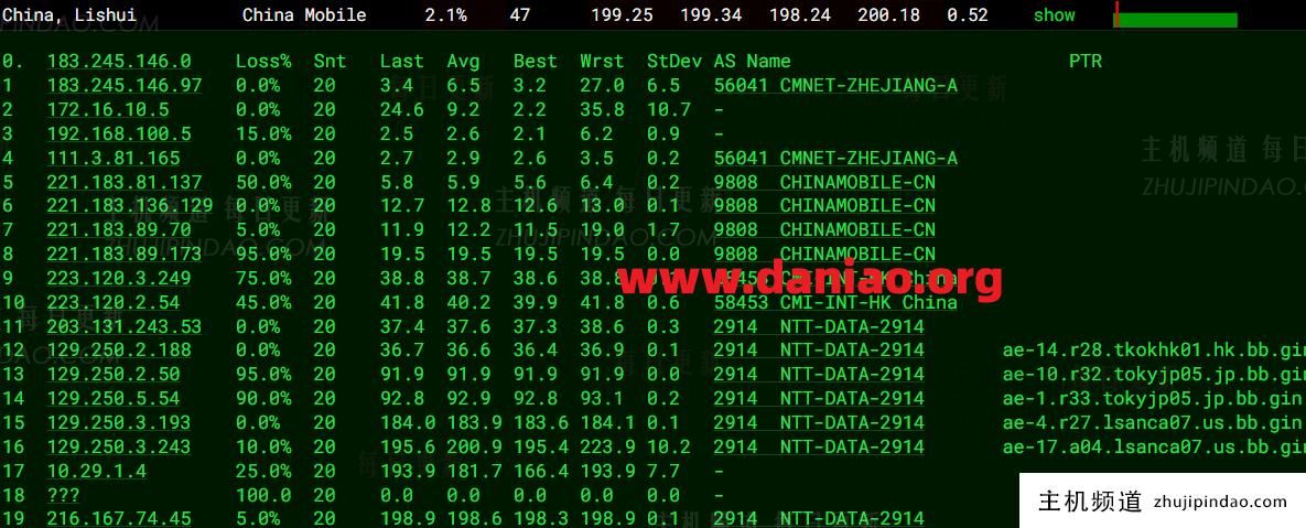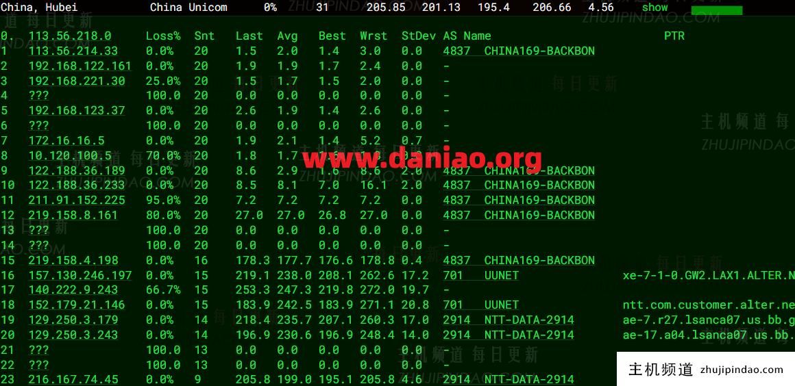 路由这块儿得说道说道了。我仔细看了下回程路由,虽然中间有些节点被隐藏了,但大致能判断出来,电信、联通、移动三网回国,基本都借道了联通的AS4837,对联通用户应该是最友好的。