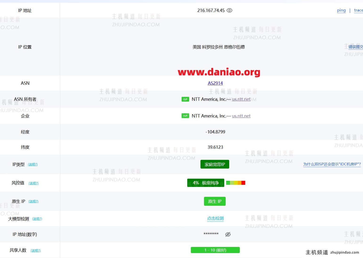 再来看看IP的“纯净度”,也就是欺诈分。分数非常低,说明这个IP很干净,没被滥用过,这对需要注册账号或者跑一些对IP环境要求高的业务来说,简直是福音。