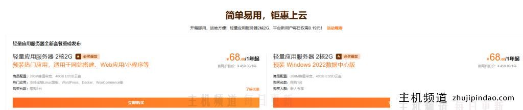- 通用算力型u1:199元/年这款,配置升级到2核4G和5M带宽,性能更强一些,适合访问量稍大或者应用更复杂的场景,同样也是续费同价,很有诚意。