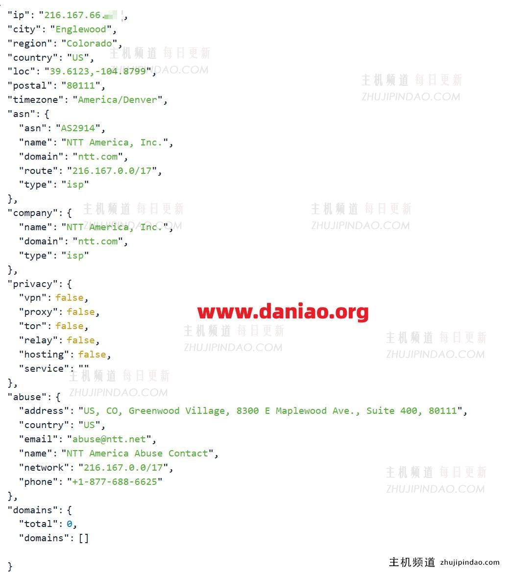 用ipinfo查一下,果然是双ISP属性,运营商是NTT,身份很“正”。