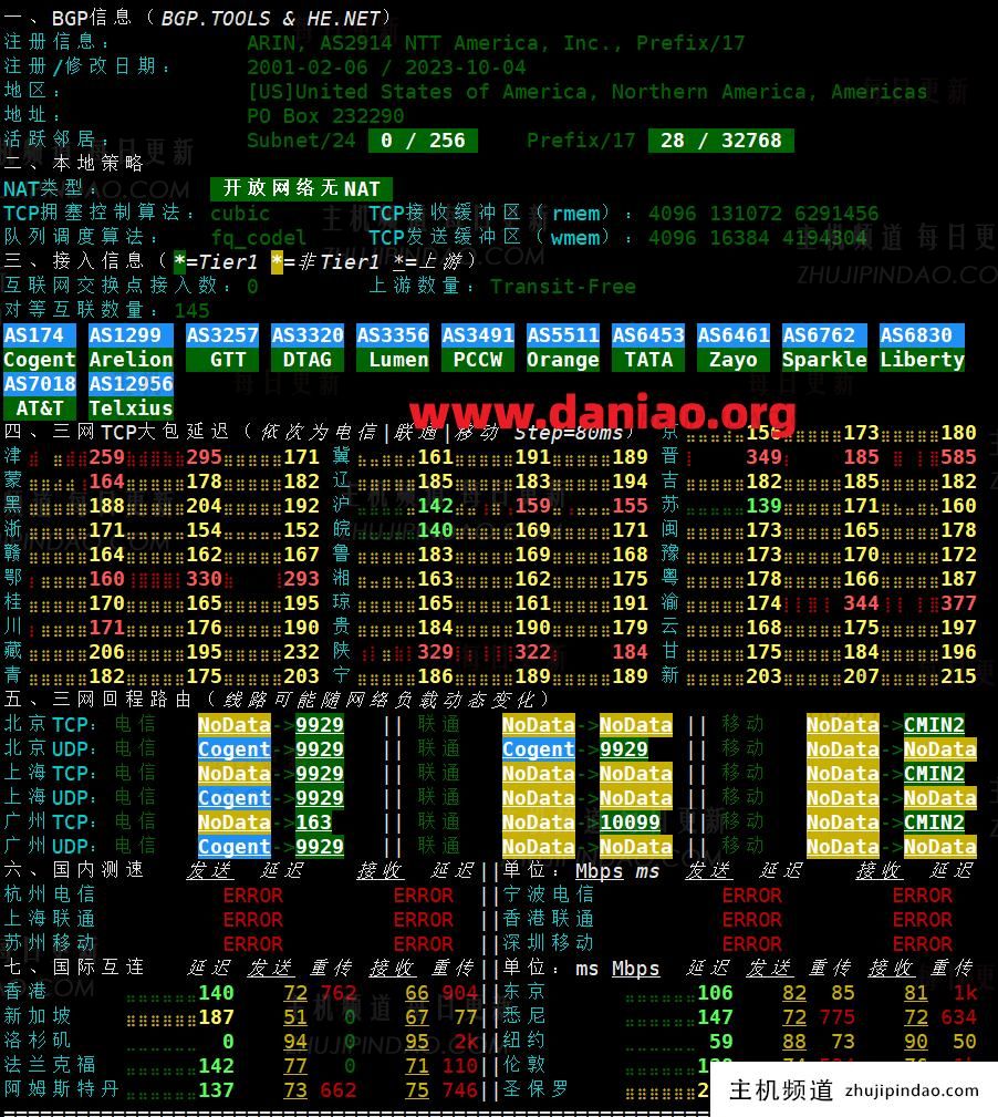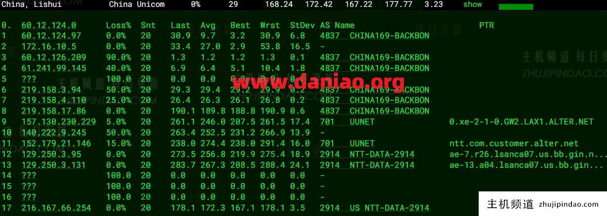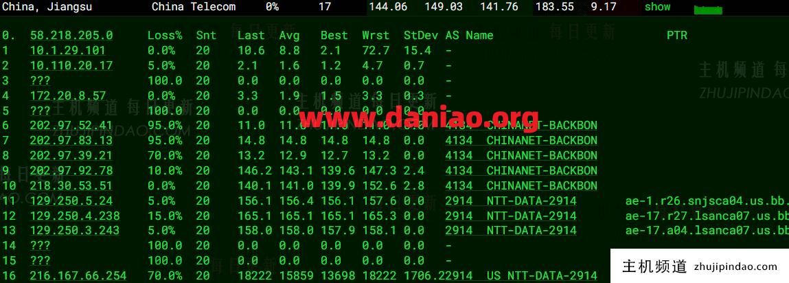 去程方面,电信是163骨干,联通是169骨干,都是直连美国西海岸后再接入NTT。