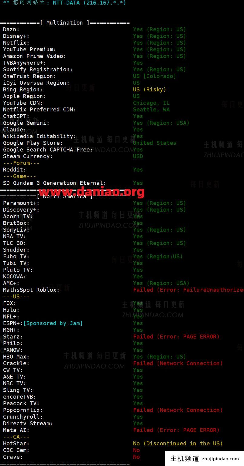 流媒体解锁能力,看图就完事了,一片绿油油,主流的美区流媒体基本通吃,非常给力。