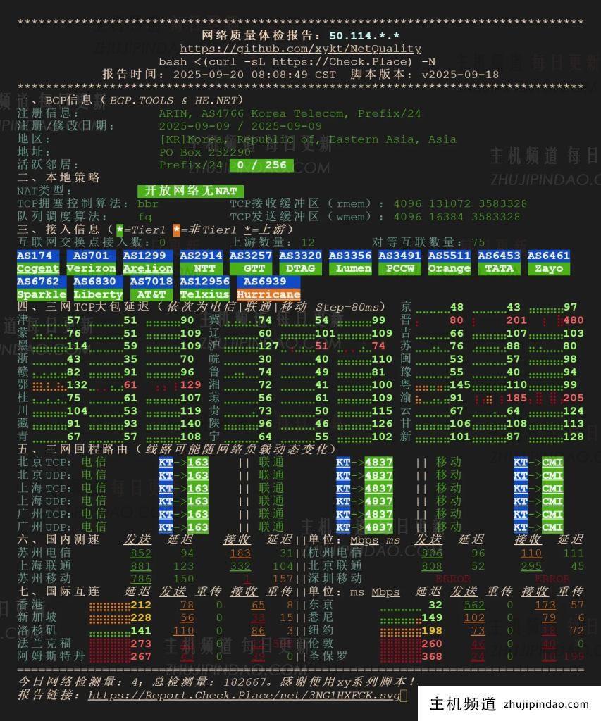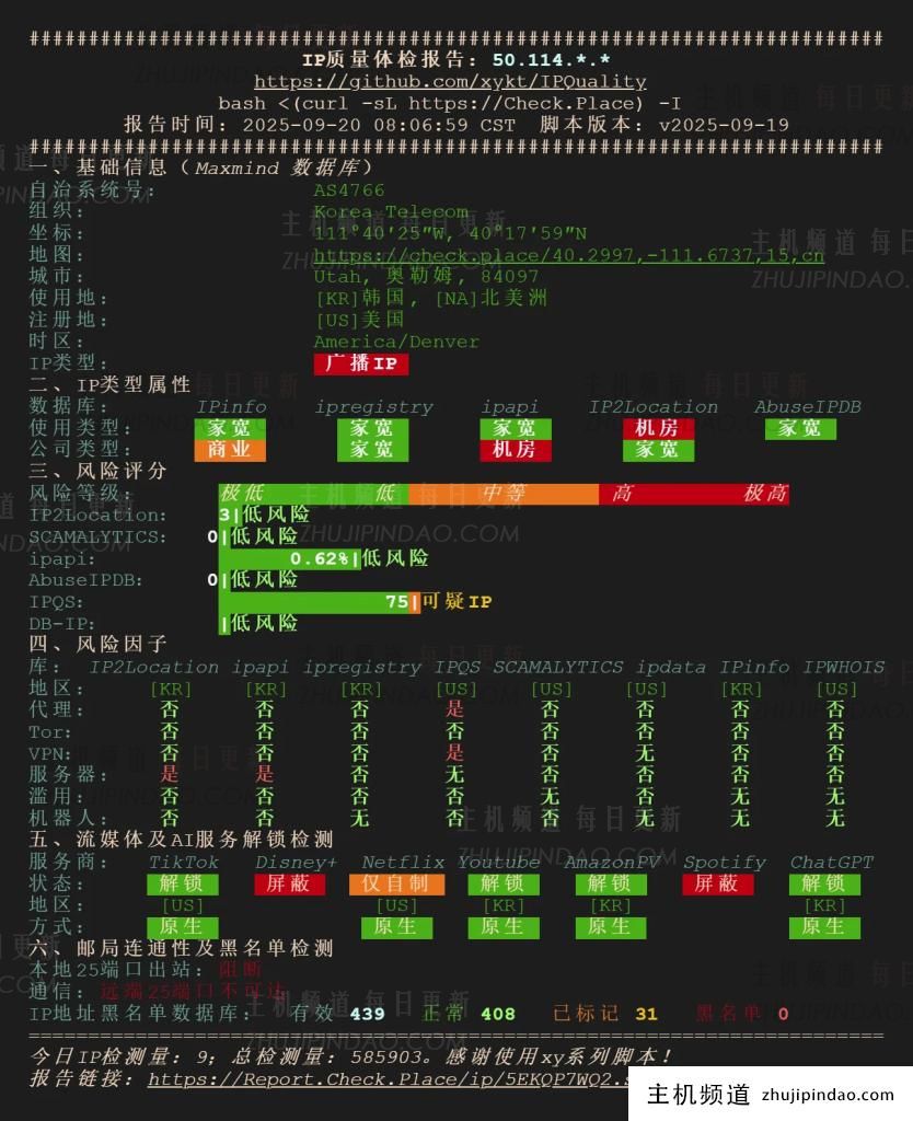 - IP归属地有点迷,查出来是韩国KT(AS4766),但实际落地在美国犹他州,也就是所谓的 IP 广播/漂移,介意的朋友要注意。